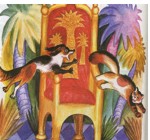 llegó el perro ladrando, asustó al gato y dijo: "Yo seré el rey" y se sentó en el trono, el perro