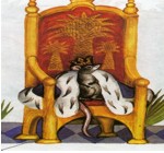 Un día llegó el ratón y dijo: "Yo seré el rey" y se sentó en el trono,