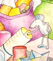 ![]() | Pero el Ratón Ratero entró en busca de ese papel para poderlo presentarlo a los demás ratones y pensar que teniendo en su poder ese papel, los perros y los gatos los respetarían. |