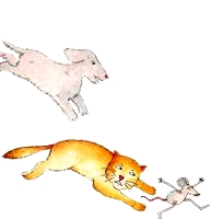![]() | Entonces Napoleón muy furioso dice: Y ustedes gatos también cuídense porque lo mismo les va a pasar a ustedes. Caramba que lío se a vuelto pero ahora comprende ¿Por qué siempre se andan persiguiendo? |